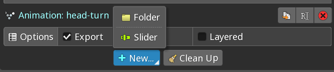 To create a slider, select an animation from the Animations node, then click New... Slider.